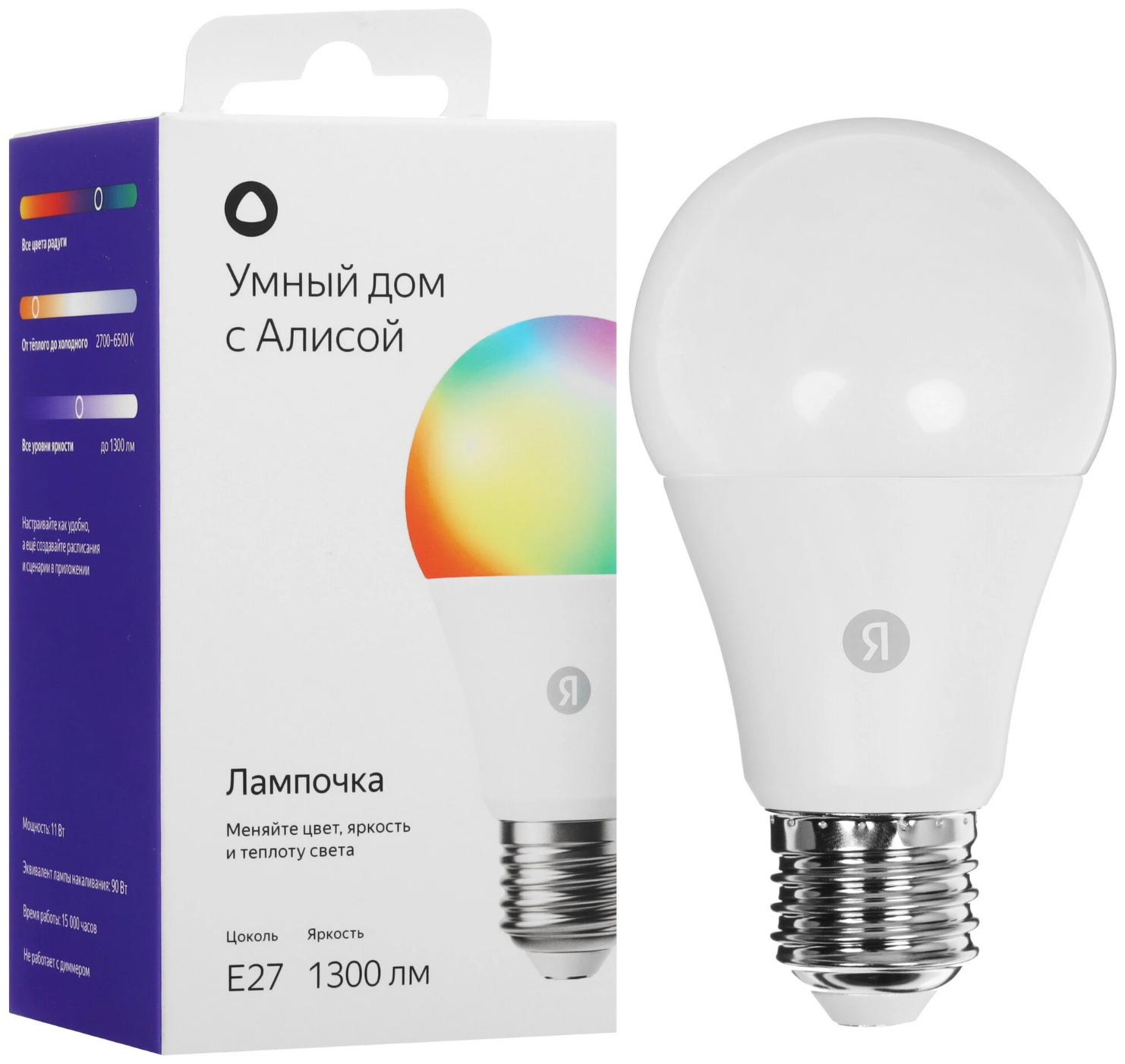 Дополнительно | мощность 11 Вт, цветовая температура 2700-6500 К, световой поток до 1300 лм, цоколь Е27 |